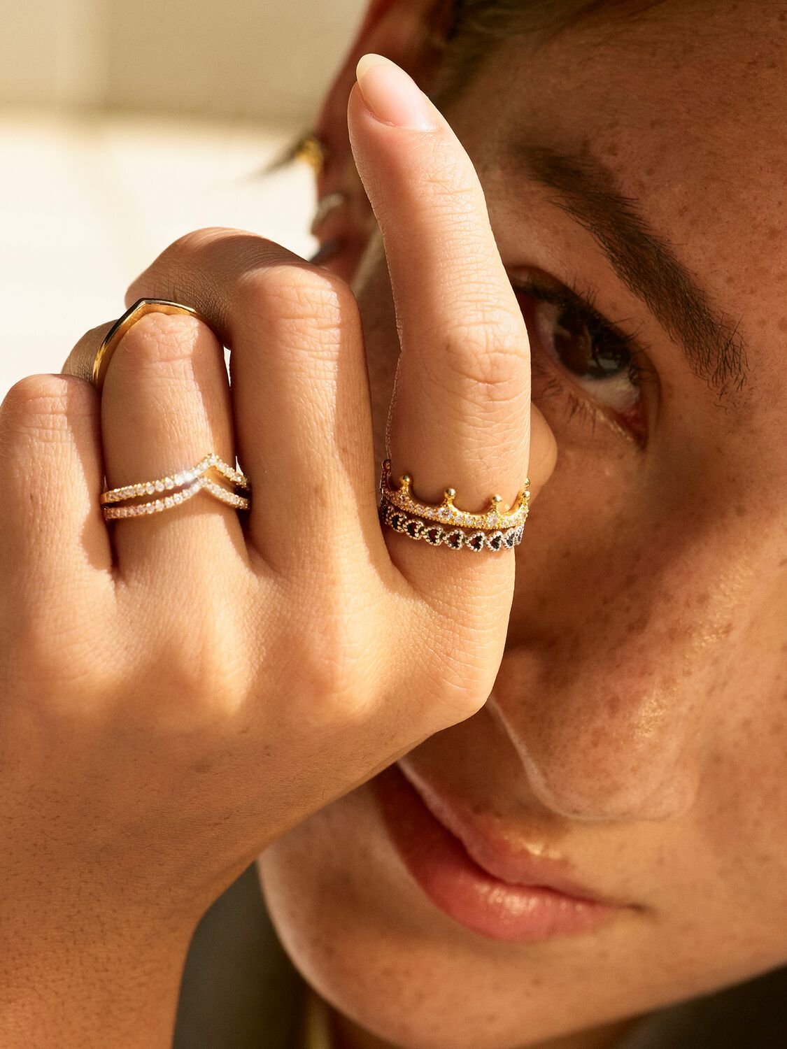 Embellece tus manos con el Anillo Barra silver con Logo Combinable. Este anillo en plata de primera ley se presenta con una forma geométrica, una estética minimalista y el icónico logo grabado encima de una barra plana. En el interior, una hilera de corazones le aportan textura y en el exterior, el brillo del metal pulido crea un juego de luz. Su fino perfil está pensando para ser combinado con el resto de tus otros anillos favoritos.
