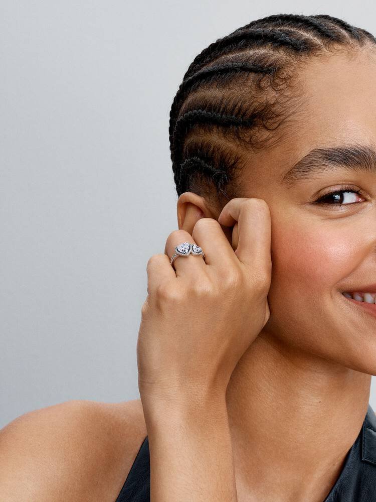 Anillo Corazones Halo Brillante
