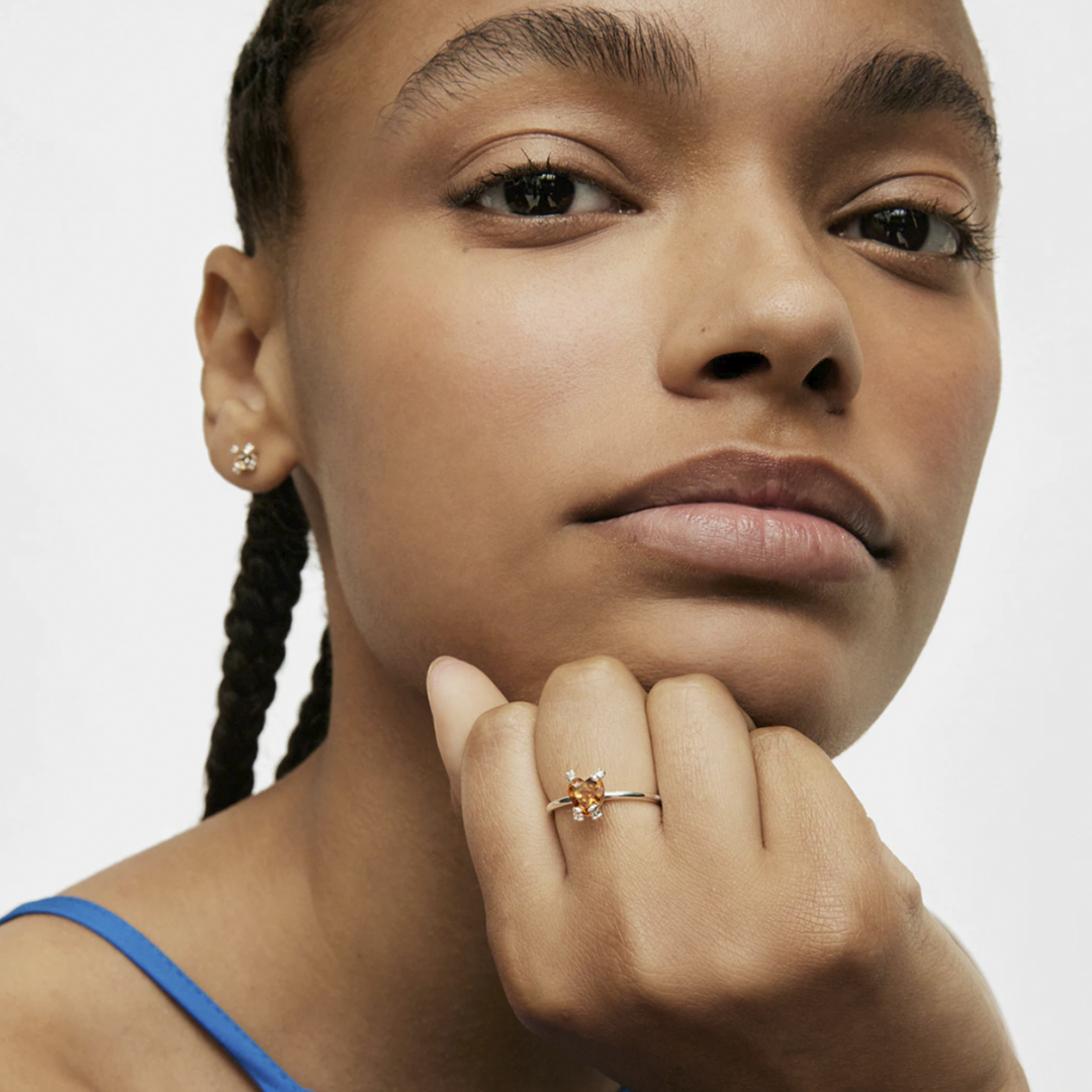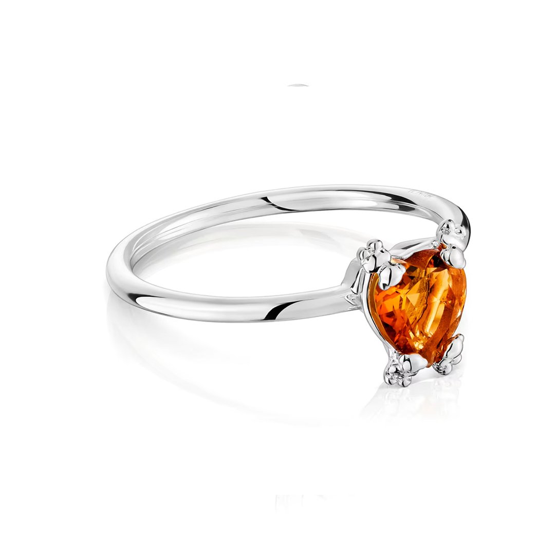 Anillo Tous Bear Pills Corazón Facetado y Citrino Naranja