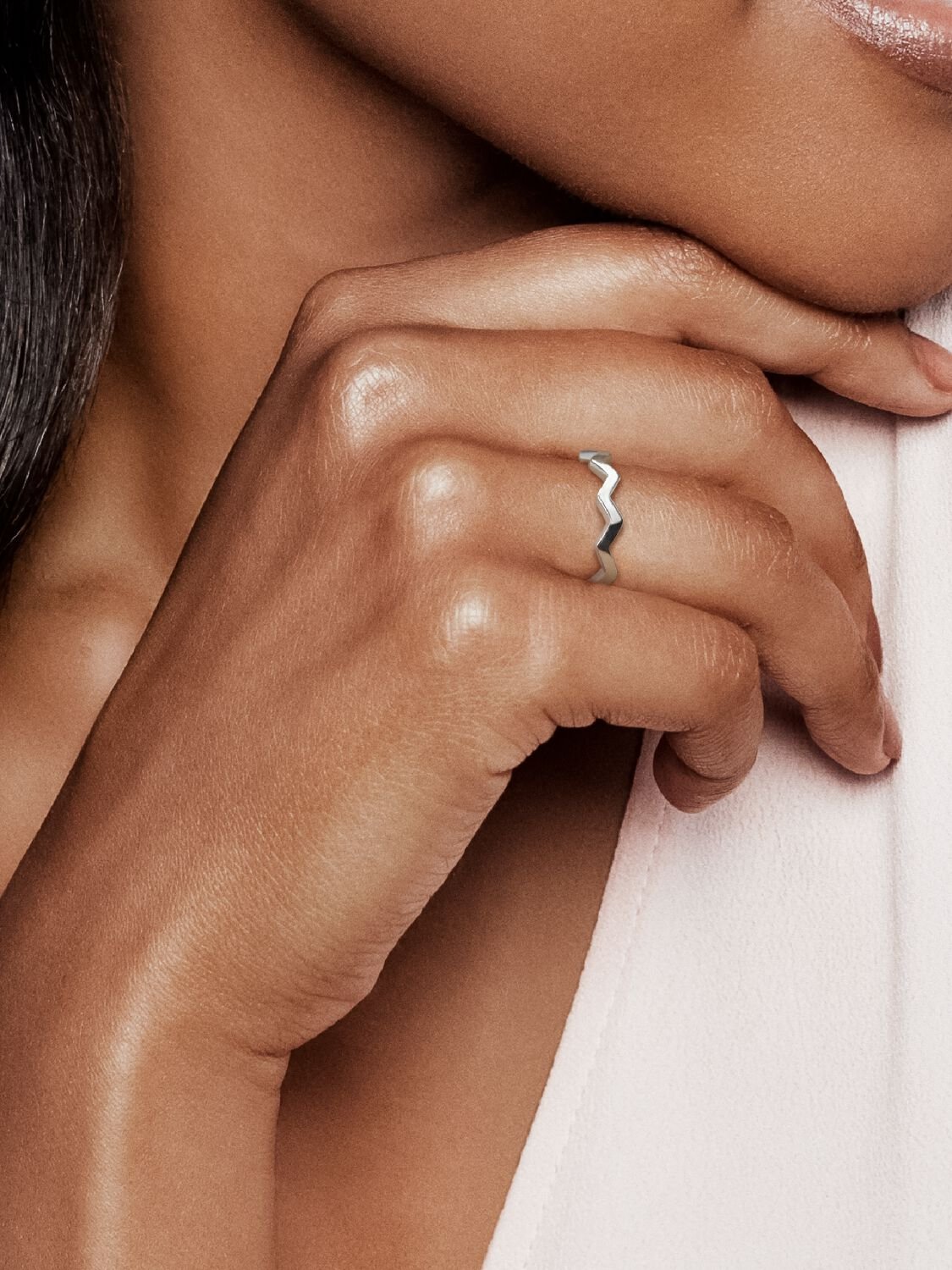 Embellece tus manos con el Anillo Barra silver con Logo Combinable. Este anillo en plata de primera ley se presenta con una forma geométrica, una estética minimalista y el icónico logo grabado encima de una barra plana. En el interior, una hilera de corazones le aportan textura y en el exterior, el brillo del metal pulido crea un juego de luz. Su fino perfil está pensando para ser combinado con el resto de tus otros anillos favoritos.