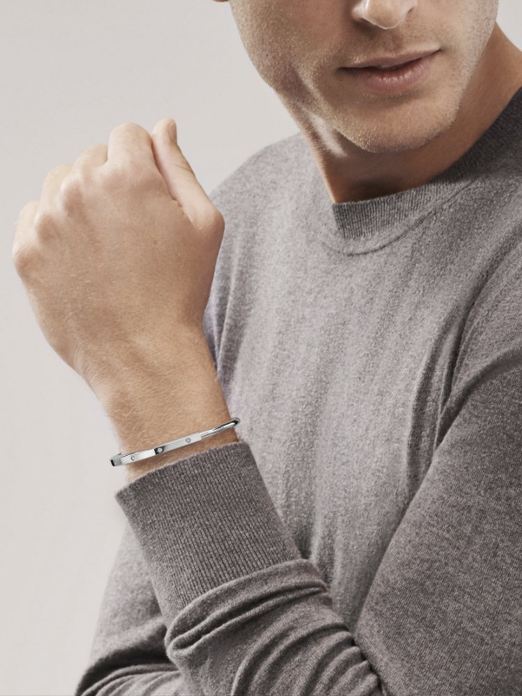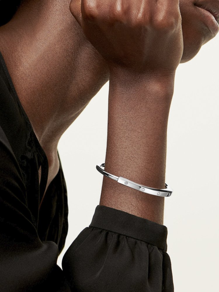 Una pulsera oval, compuesta por dos arcos rígidos, que se luce ajustada en torno de la muñeca y se retira con un destornillador concreto. El sistema de cierre consta de dos tornillos funcionales situados en ambos lados de la pulsera: necesitarás la ayuda de otra persona para abrirla o cerrarla. Para determinar la talla de tu pulsera Love, mide tu muñeca y añade un centímetro a tu talla para lucirla ajustada o dos centímetros para un ajuste más holgado.