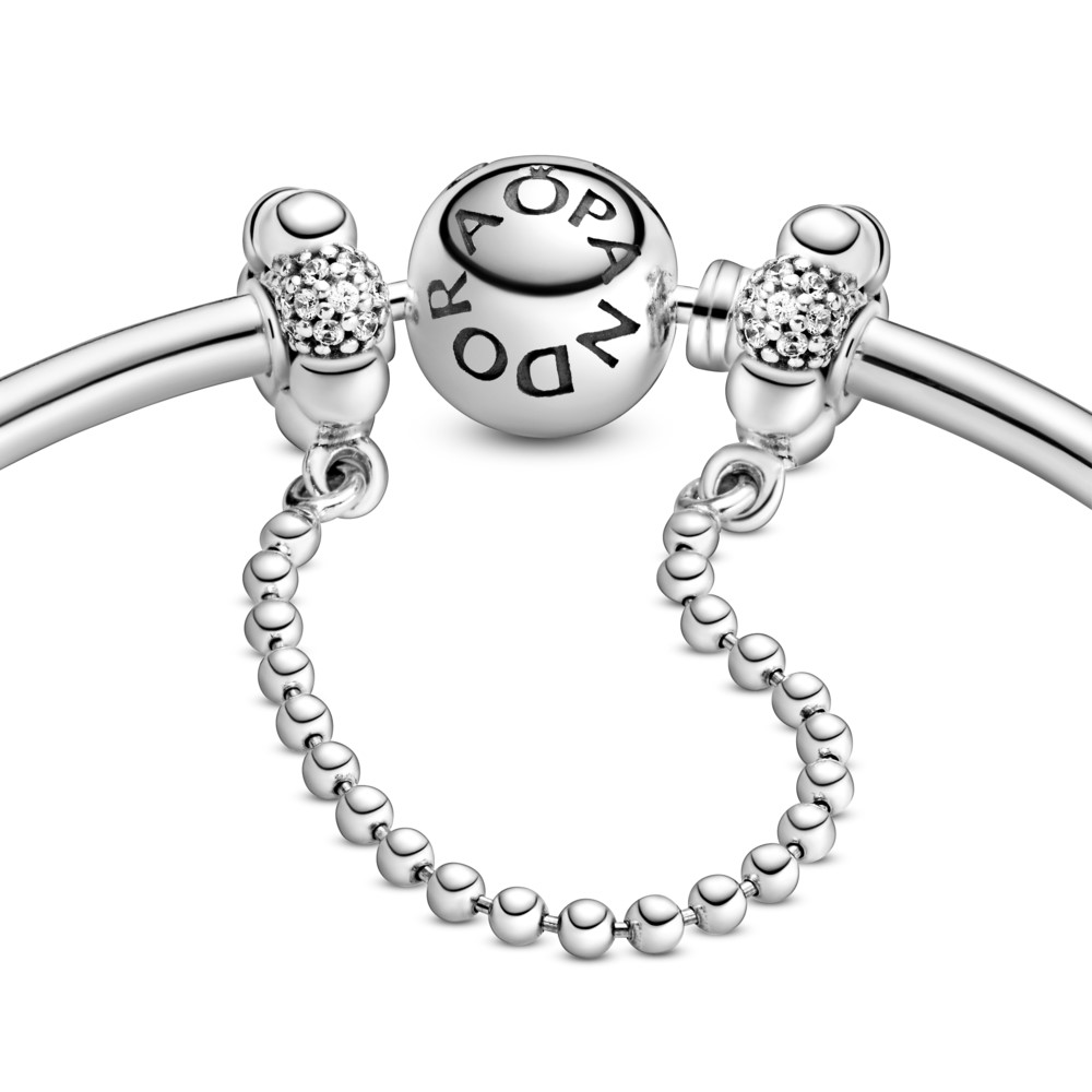 Asegura tu colección de charms, para que no se mueva, con nuestra Cadena de Seguridad Esferas en Pavé, embellecida en plata de primera ley. La cadena de seguridad se sujeta en cada extremo de tu pulsera para aumentar algo más su seguridad y tranquilidad. La cadena de seguridad se presenta con 22 circonitas cúbicas con brillantes transparentes, en forma redonda y con engastes en grano. Con esta cadena de seguridad, podrás estar siempre segura de que tu colección atraerá todas las miradas.