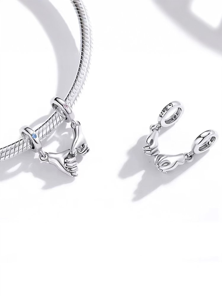 En este Charm de plata esterlina, tienen un traje de explorador espacial está decorado con microperlas y una piedra de circonita cúbica transparente forma el tanque de oxígeno. El esmalte azul ilumina la visera del casco. El brazo del astronauta presenta un corazón recortado engastado con una piedra brillante y sostiene una estrella brillante engastada con circonita cúbica transparente. Este dulce amuleto estrellado es un recordatorio para alcanzar los cielos.