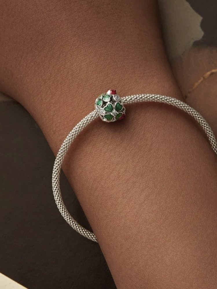 En este Charm de plata esterlina, tienen un traje de explorador espacial está decorado con microperlas y una piedra de circonita cúbica transparente forma el tanque de oxígeno. El esmalte azul ilumina la visera del casco. El brazo del astronauta presenta un corazón recortado engastado con una piedra brillante y sostiene una estrella brillante engastada con circonita cúbica transparente. Este dulce amuleto estrellado es un recordatorio para alcanzar los cielos.