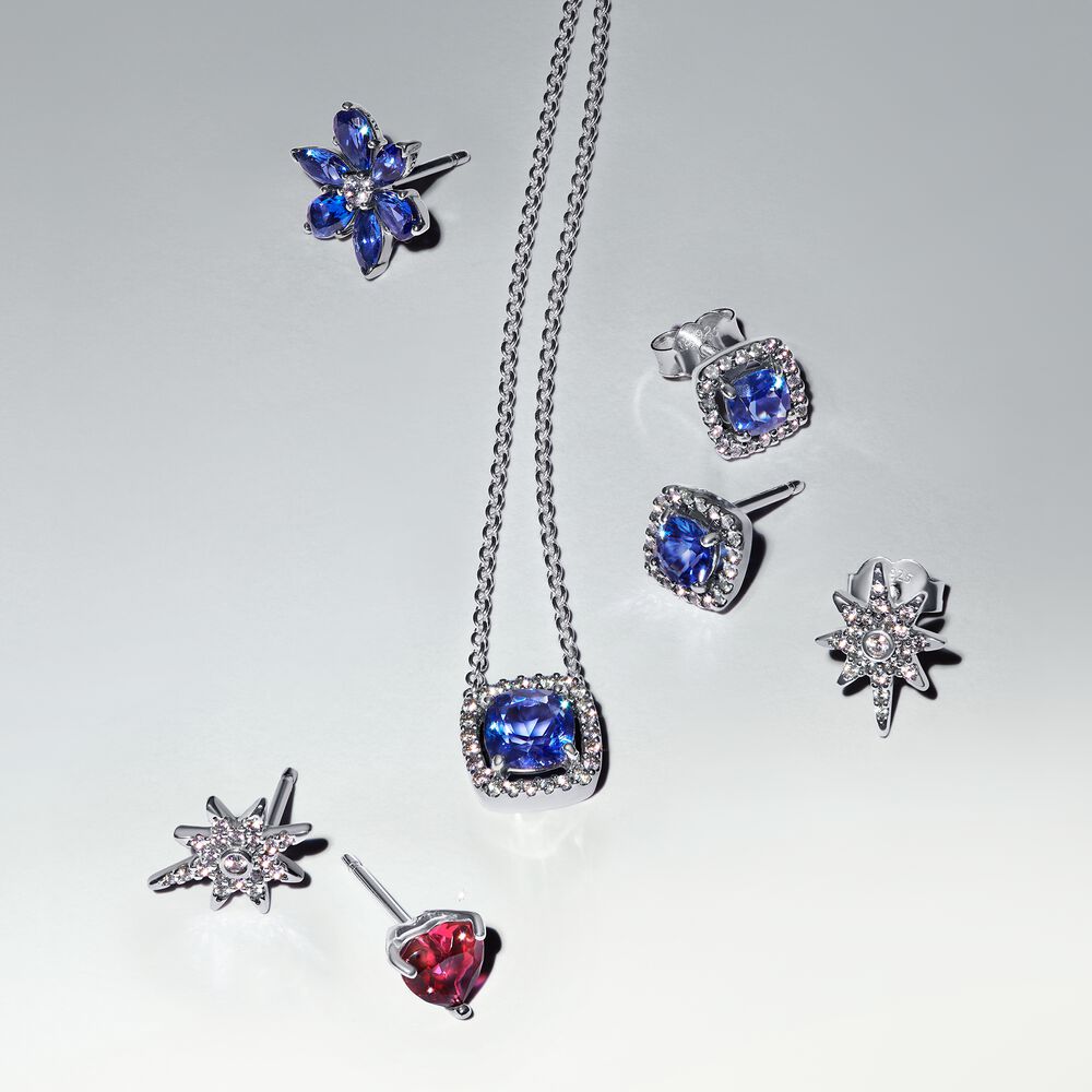 Pendientes de botón Halo Brillante Cuadrado Azul