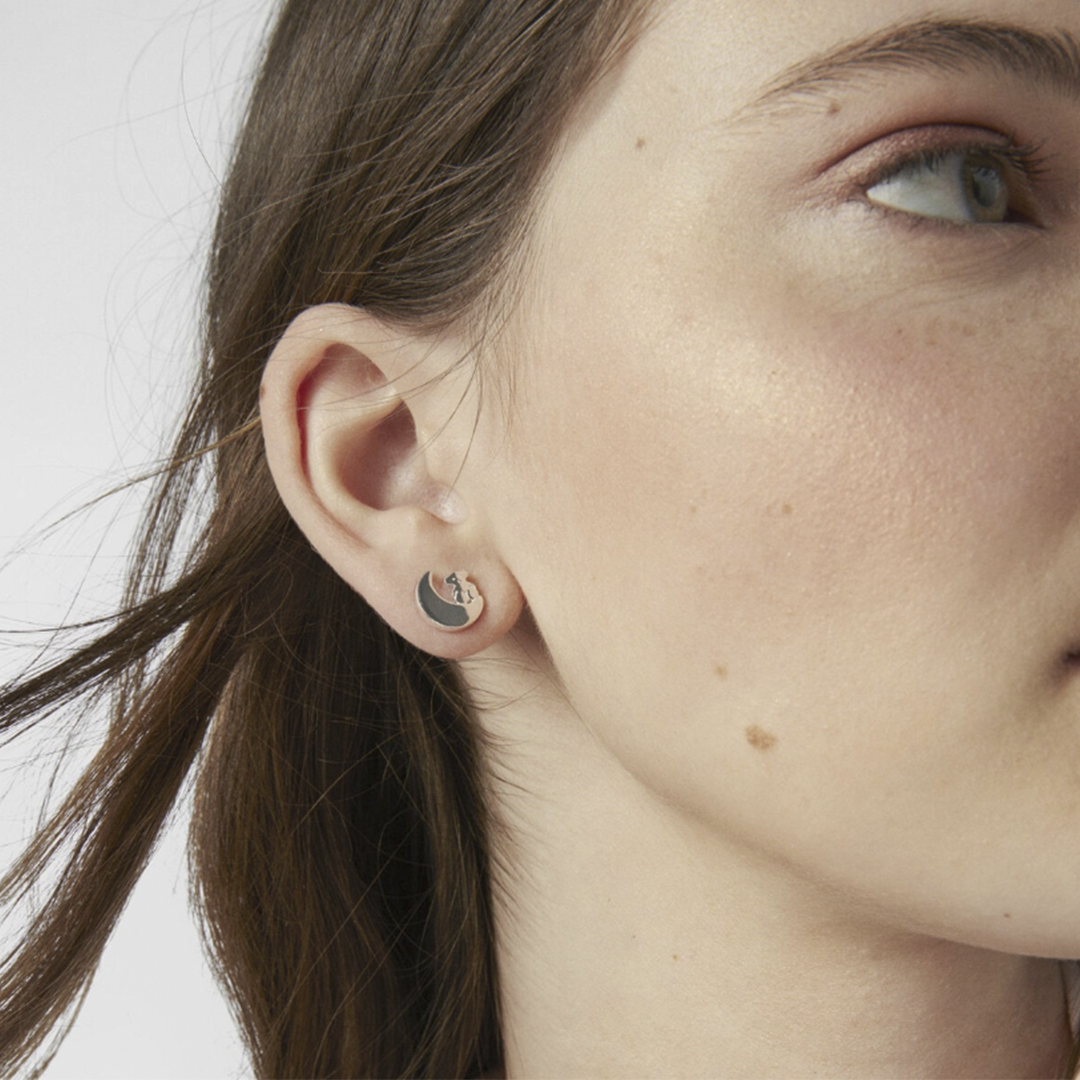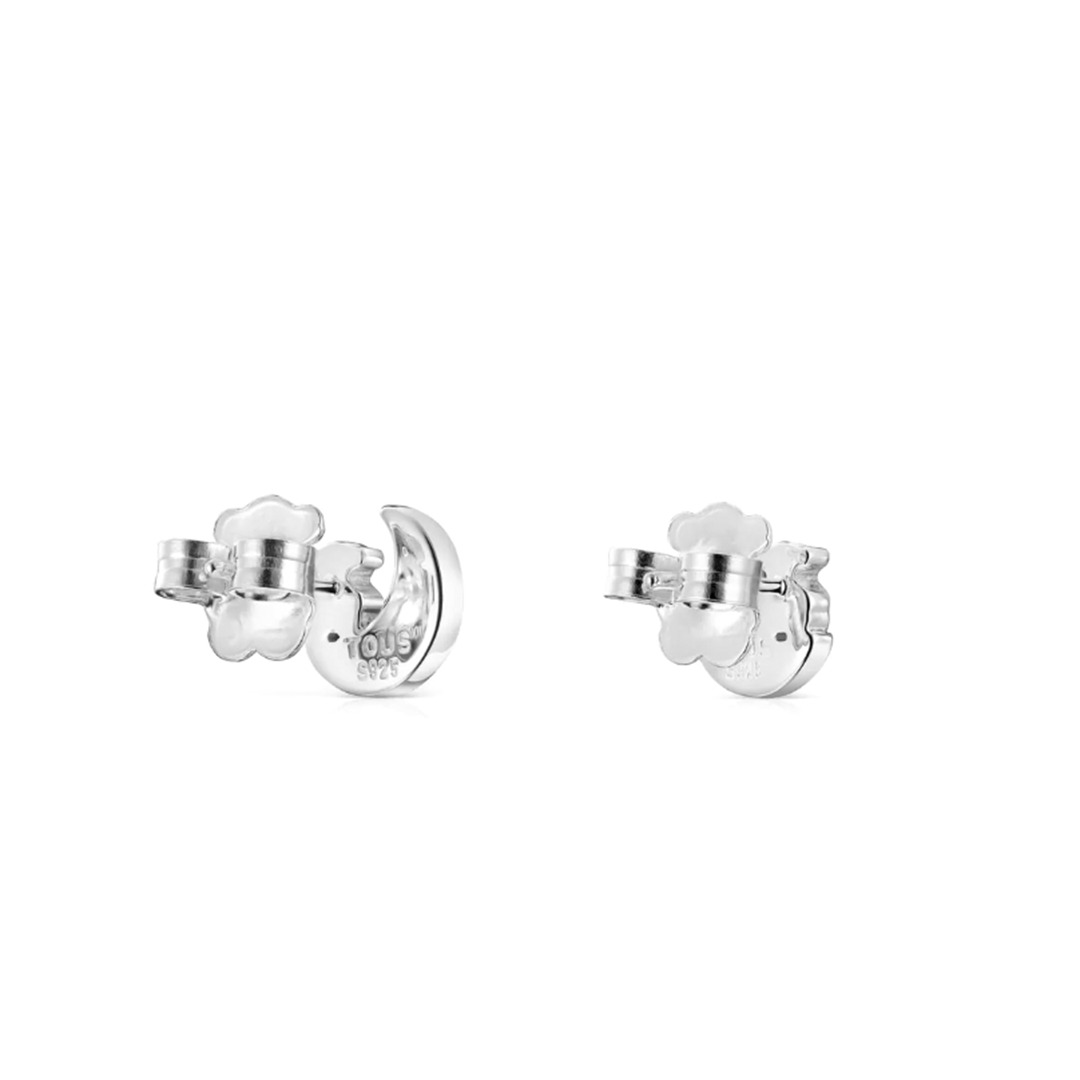Aretes logo en plata de ley con 56 circonitas transparentes